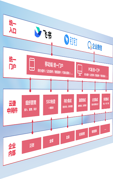 对协作平台提供支持服务,,支持企业应用与协作平台对接,,包含组织同步、、、消息集成、、、、待办集成等。。支持目前主流的协作平台:钉钉、、、、企微和飞书。。
